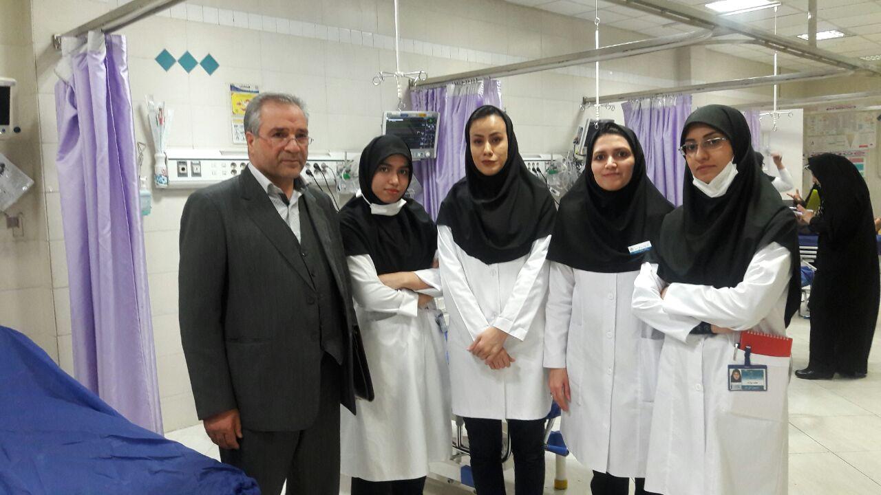 جناب آقاي نوروزي مديرگروه محترم اتاق عمل و هوشبري از کارآموزي دانشجويان در بخش اورژانس عدالتيان بازديد کردند. در اين بازديد روند کارآموزي دانشجويان در اين بخش مورد بررسي قرار گرفت و در مورد شرايط آموزشي و امکانات آنجا مسائل بررسي شد.
